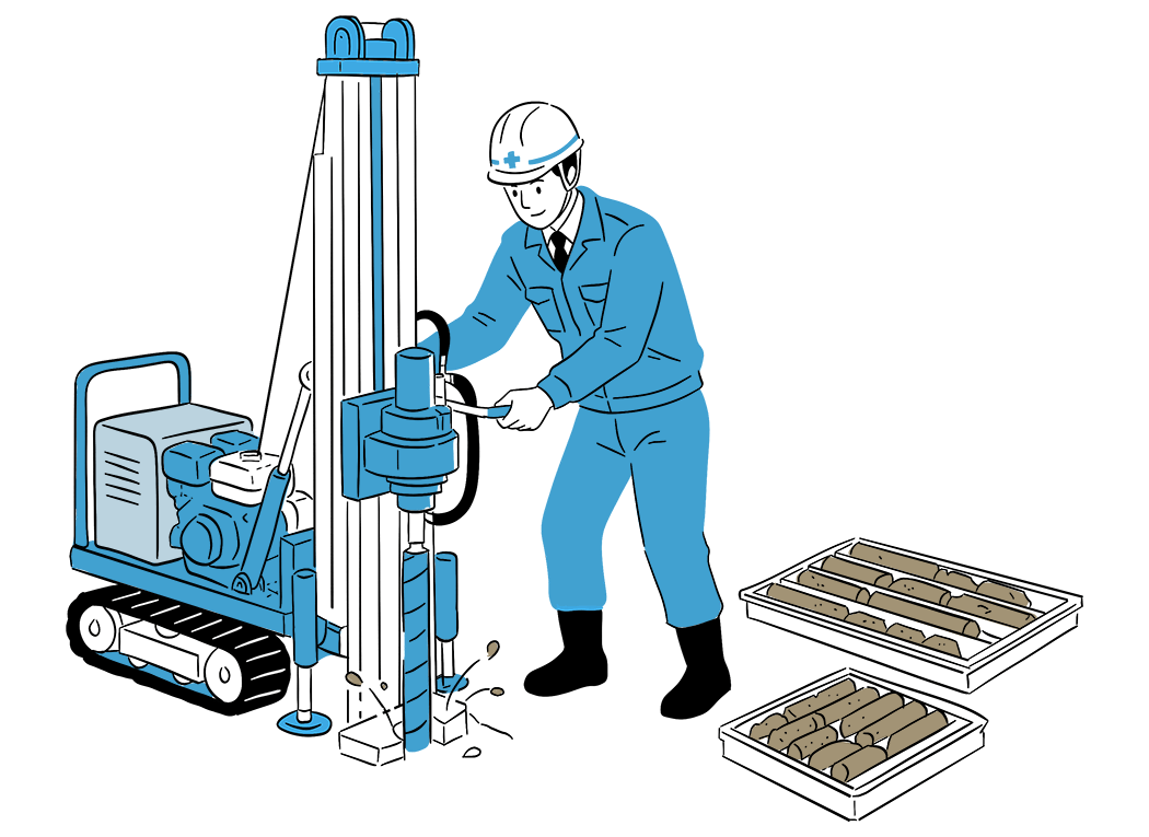 当社の地質調査は、地盤の性質や強度、地下水の状況など、目に見えない大地の情報を正確に把握し、地下や構造物の安全性を支える重要な業務です。ボーリング調査や物理探査、土質試験などを組み合わせ、地盤リスクを多角的に評価することで、災害に強い構造物づくりや適切な土地利用計画に貢献します。