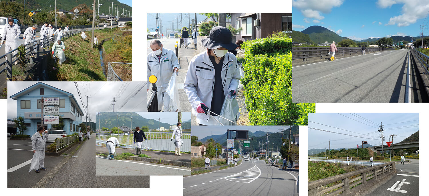 事務所周辺や主要道路の清掃を通じて、地域への感謝を想う取り組みです。